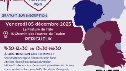Le vendredi 5 décembre 2025, c'est la Journée santé cardiovasculaire des femmes à Périgueux.