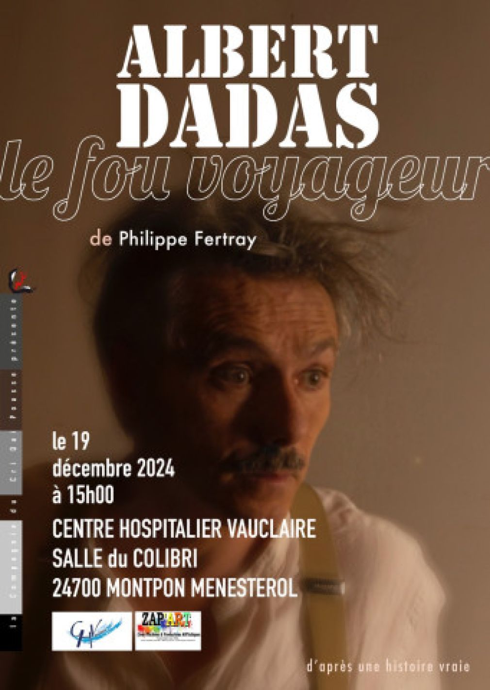 Le CH Vauclaire vous invite au spectacle "ALBERT DADAS, LE FOU VOYAGEUR" qui aura lieu le jeudi19 décembre 2024 à 15h00.