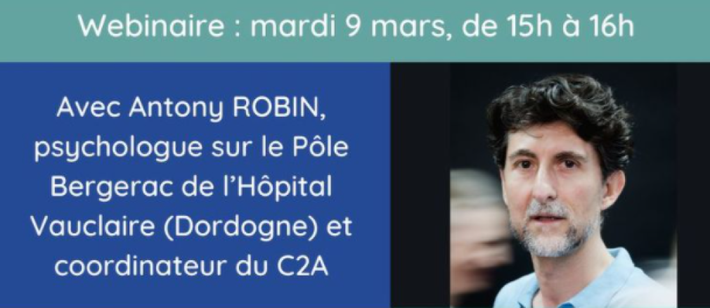 Antony Robin est psychologue sur le Pôle Bergerac de l’Hôpital Vauclaire (Dordogne) et coordinateur du C2A.